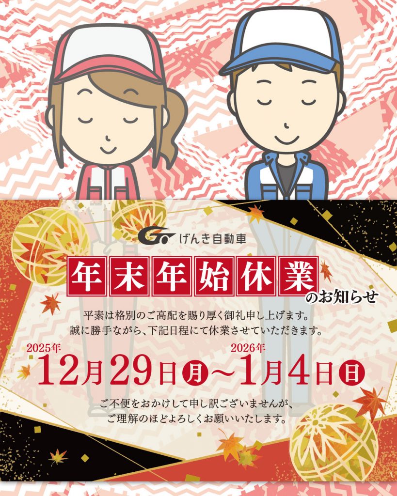 げんき自動車の年末年始休業をお知らせいたします。